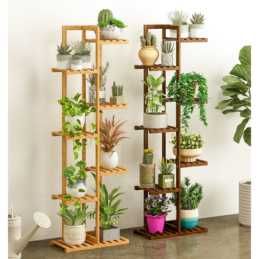 Solid Wood Multi Story Flower Rack Wooden Vertical Plants Flower Pots Shelves Shopee Malaysia